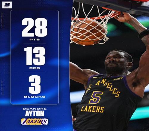 攻防两端,艾顿都展现了极强的统治力。数据显示,这是艾顿本赛季第10场比赛20+10篮板,湖人在此期间10战全胜。